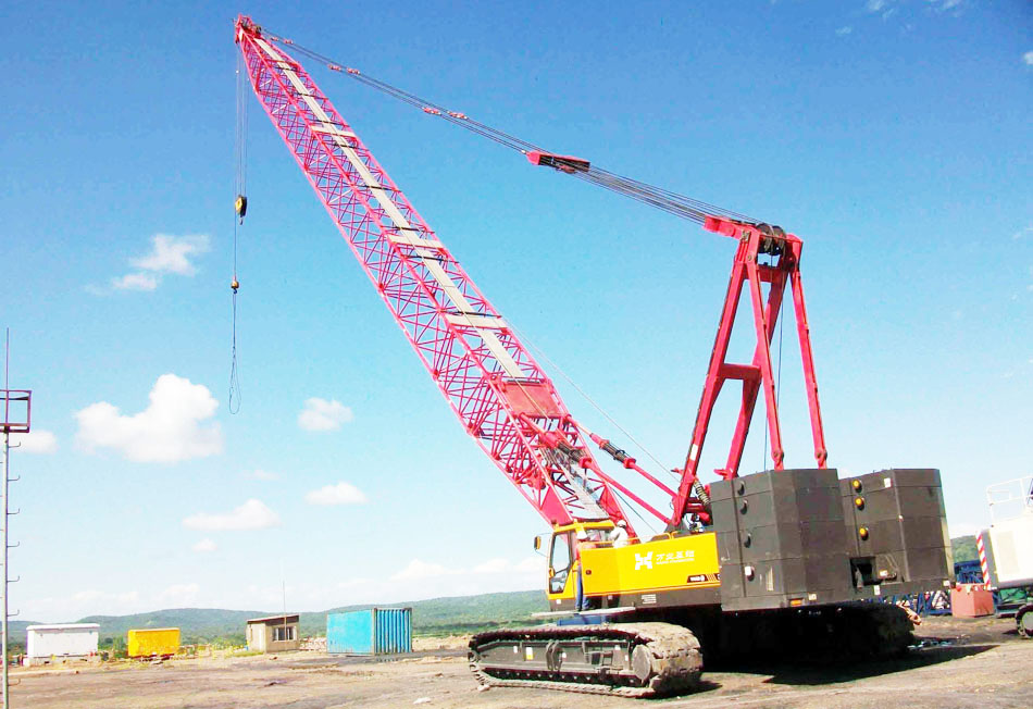 履帶起重機(jī)可以進(jìn)行物料起重、運(yùn)輸、裝卸和安裝等作業(yè)。履帶起重機(jī)具有起重能力強(qiáng)、接地比壓小、轉(zhuǎn)彎半徑小、爬坡能力大、不需支腿、帶載行駛、作業(yè)穩(wěn)定性好以及桁架組合高度可自由更換等優(yōu)點(diǎn),在電力、市政、橋梁、石油化工、水利水電等建設(shè)行業(yè)應(yīng)用廣泛。
